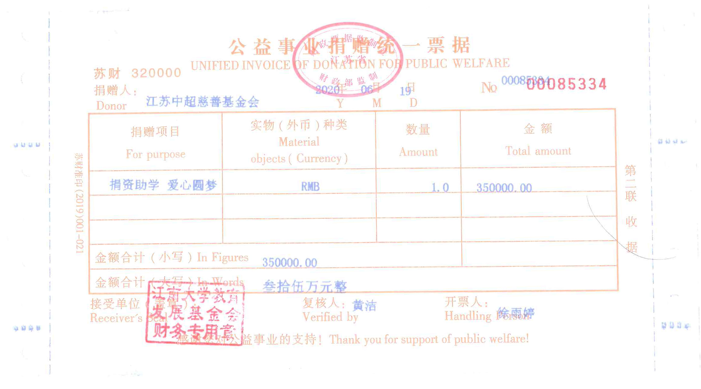 百年大计,教育为本,捐助教育,惠泽千秋。8月28日,江苏中超慈善基金会举行2020年助学金颁发仪式。江苏中超慈善基金会秘书长刘广忠和集团工会主席潘鹏平代表基金会,向宜兴市徐舍镇、南京市高淳区东坝镇等乡镇的贫困学子代表共计发放中超爱心基金近6万元。